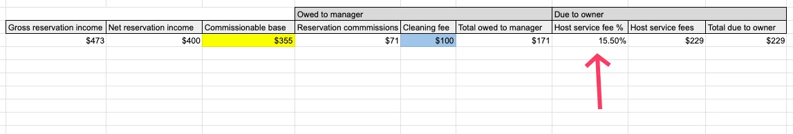 - On Owner Statements/Invoices, Hospitable will display only the base rate of the fee to the Owner, and the service fee from that fee will roll into the ‘Host service fees' column.