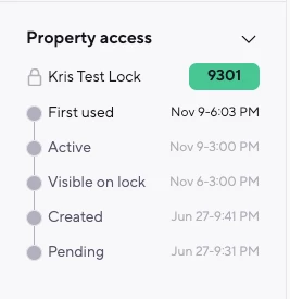 You’ll now see a new “First used” status, showing the exact time a smart lock code was first used, the same timestamp you’d normally find in the device dashboard.