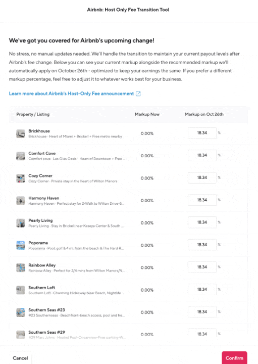 Starting on October 27th, Airbnb's transition all hosts connected to a PMS from the current split fee to their 15.5% Host Only Fee.