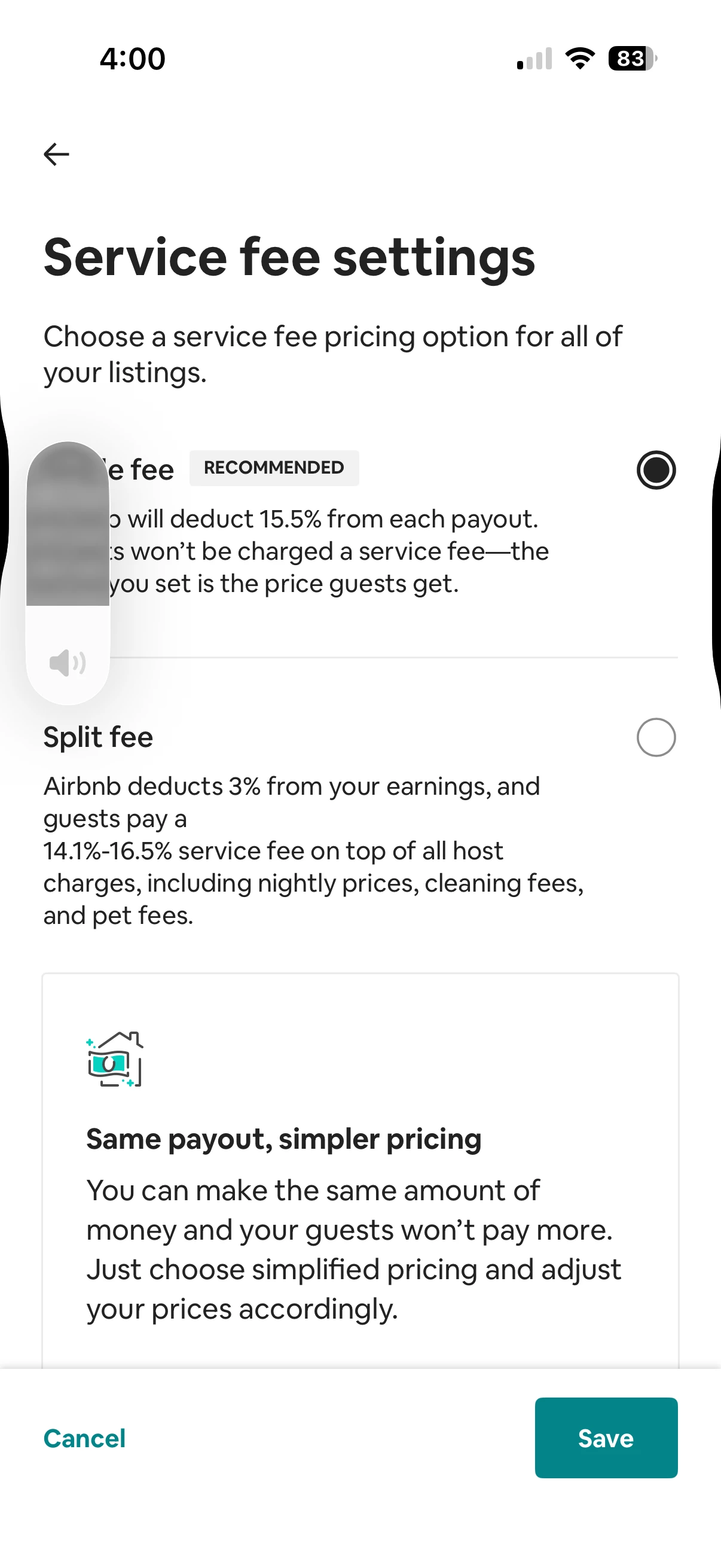 After all that big announcement and chaos, Airbnb has not made it so that you can switch back to the old host fee model of 3%!