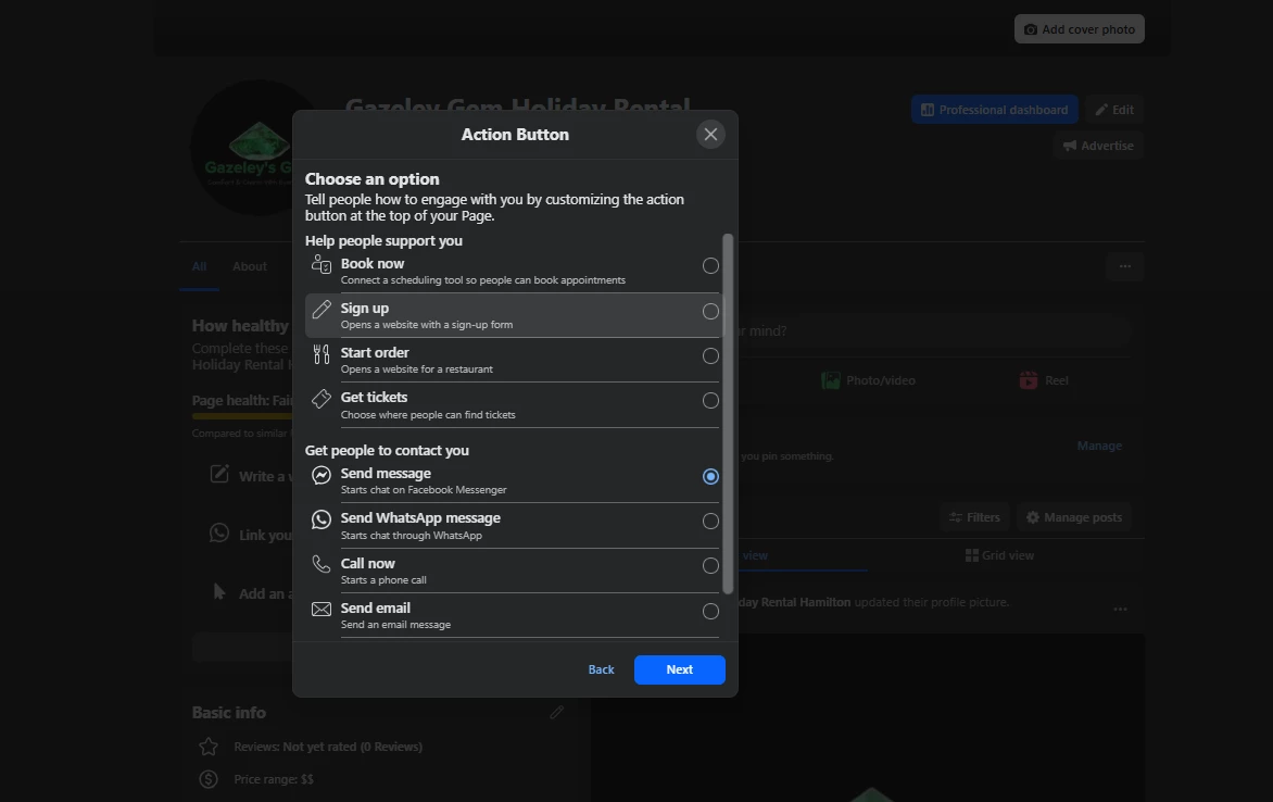 I’m trying to add a action button on my fb page and thought it would be good if this was integrated.