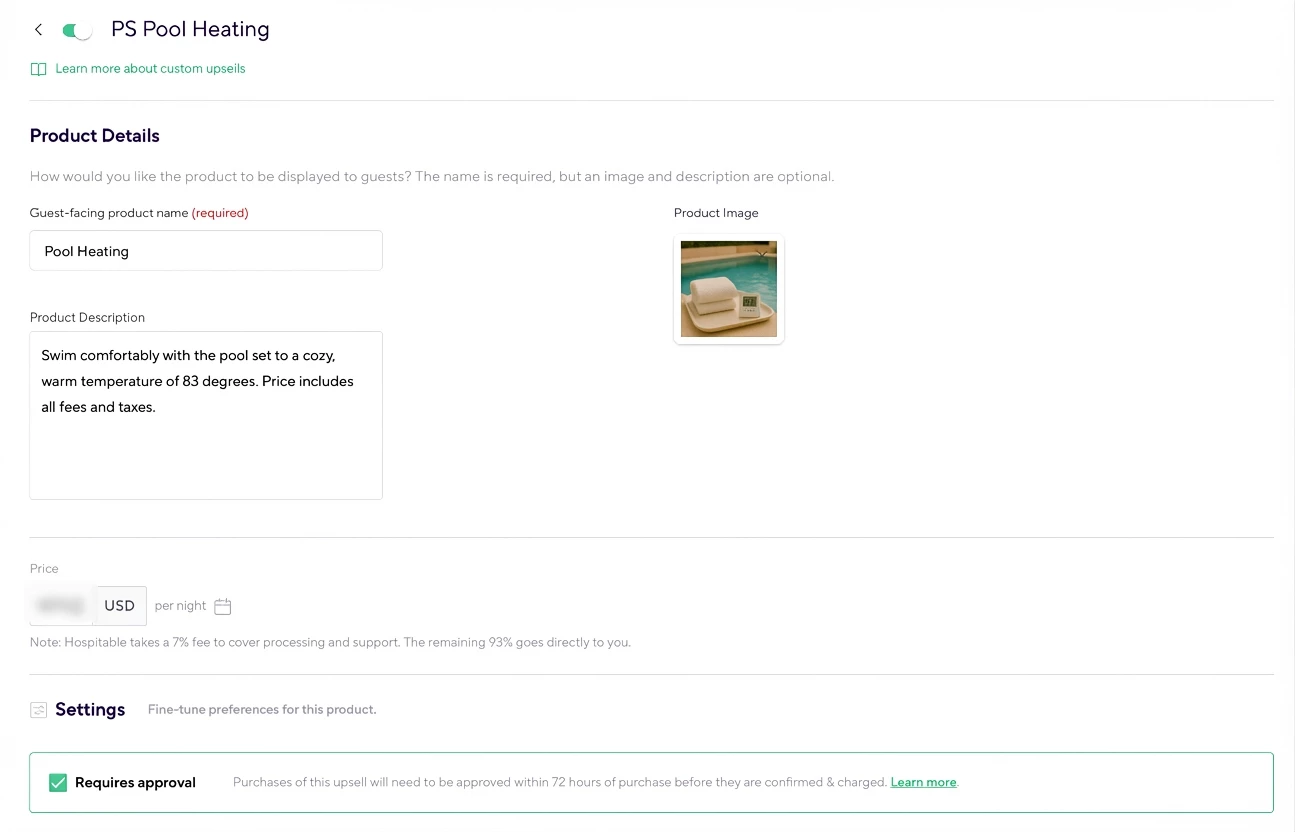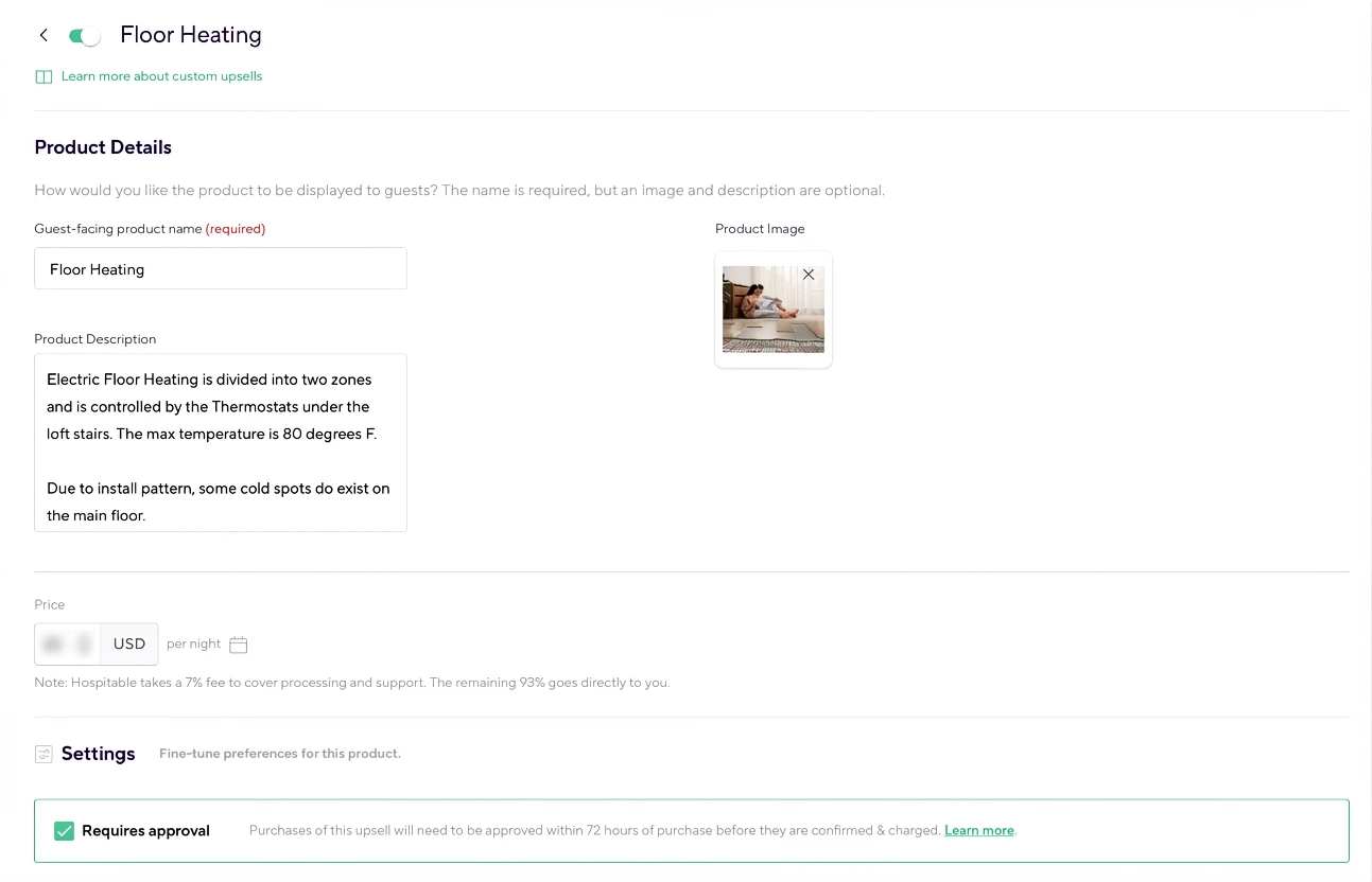 Upsells can be toggled on and off, so you can safely test them with a few bookings before rolling them out to all listings.