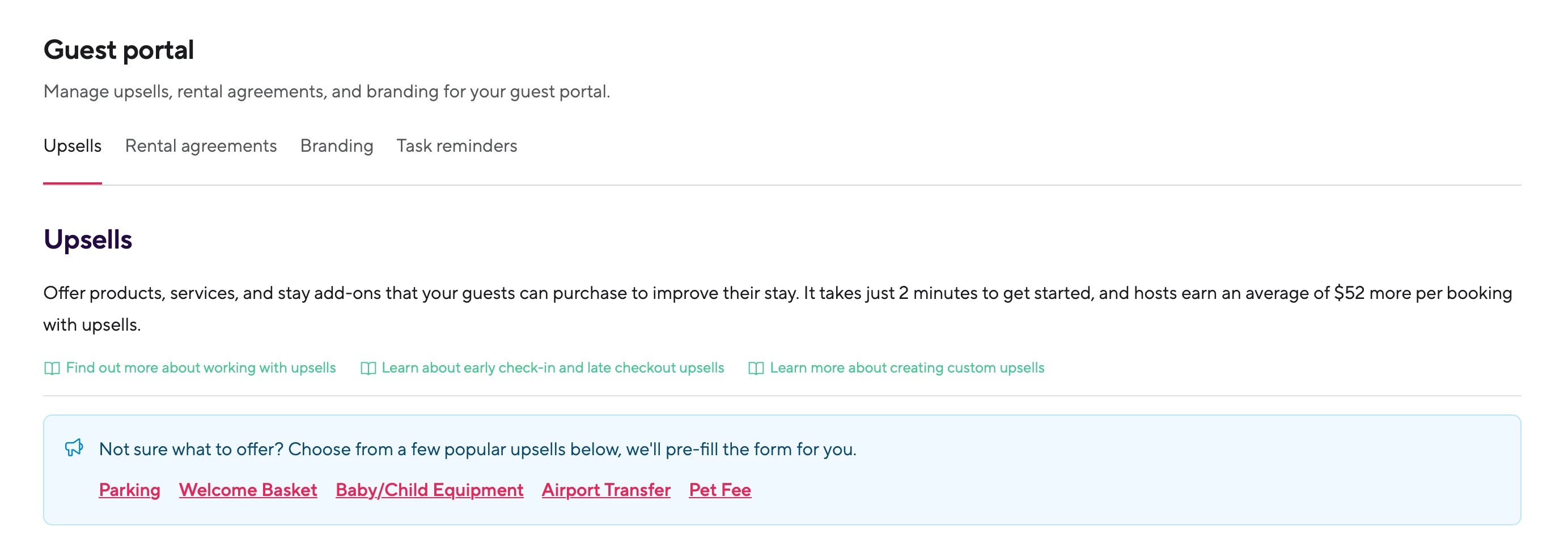 Include the Upsell smart code in your automated guest messages, or even better, the Guest Portal short code %guest_portal%, which gives guests an overview of their stay.